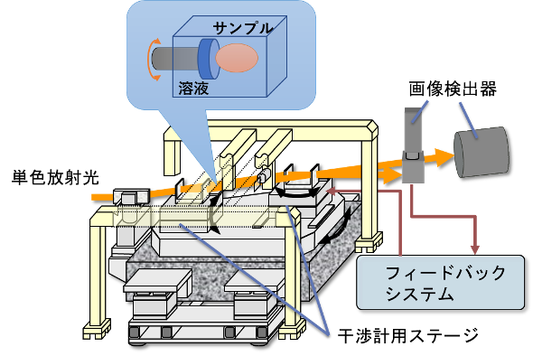 図1 結晶X線干渉法を用いたイメージングシステムの概要。